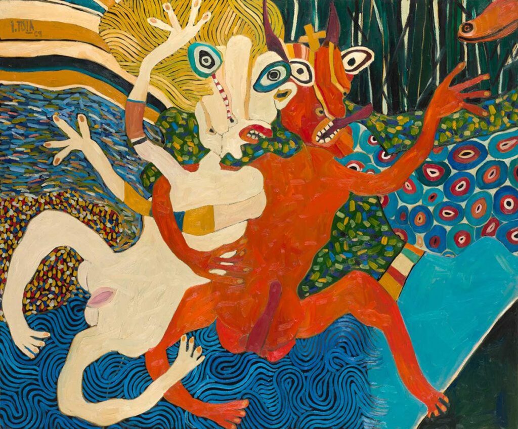 Instalación inmersiva de la vida y obra del artista peruano José Tola -a propósito de los 6 años de su fallecimiento- en la que se puede apreciar su evolución entre los años ochentas y noventas, desde sus primeras experimentaciones materiales y formas visuales.