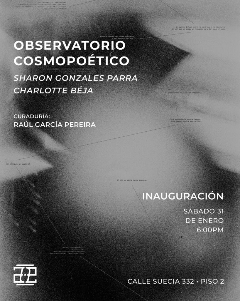 Exposición de las artistas visuales Sharon Gonzales Parra (Cusco) y Charlotte Béja (Francia) que muestra el universo como un paralelo a la introspección: busca un sentido en lo vasto del universo y lo pequeño. El recorrido se da a través de artefactos de observación, personajes ficticios, textos y fotografías análogas.